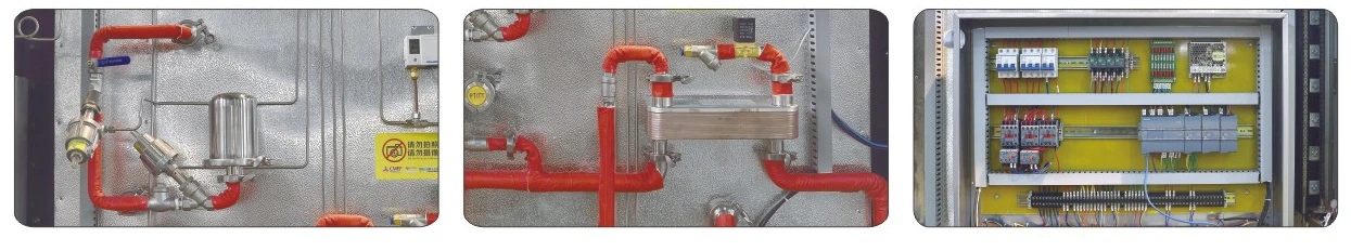 ● पाइपलाइन प्रणाली:क्लॅम्प जॉइंट्ससह स्टेनलेस स्टील सॅनिटरी पाइपलाइन, सर्व स्वयंचलित पाइप वेल्डरद्वारे वेल्डेड आहेत. जर्मन GEMUE अँगल सीट व्हॉल्व्ह, तैवान एअरटॅक सोलेनोइड व्हॉल्व्ह, जर्मन स्पेक डायरेक्ट-कनेक्टेड वॉटर रिंग व्हॅक्यूम पंप.